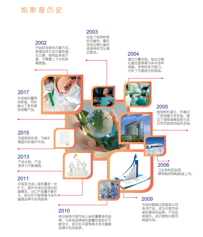 截止到2012年底,凱斯普滅菌器已經在中國裝機超過1000臺,出口20多個國家,并且國外裝機已超過400臺。成為名副其實的中國過氧化氫低溫等離子體滅菌器。